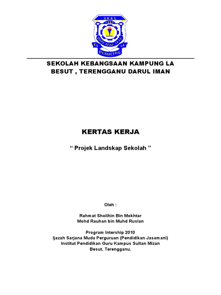 Doc Sekolah Kebangsaan Cadangan Kertas Kerja Untuk Membina Sebuah. 82 Menubuhkan jawatankuasa kerja Lampiran 1 83 Melakar pelan lokasi Lampiran 2 84 Membuat agihan tugas mengumpul kotak polisterin terpakai dan menyelenggara kebun 85. 20042014 10pengenalan kertas kerja berkumpulan ini dibuat bagi memohon pertimbangan dan persetujuan guru besar sekolah kebangsaan desa baiduri untuk kami sebagai guru pelatih menjalankan projek menghasilkan landskap dan menceriakan kebun kemahiran hidup.